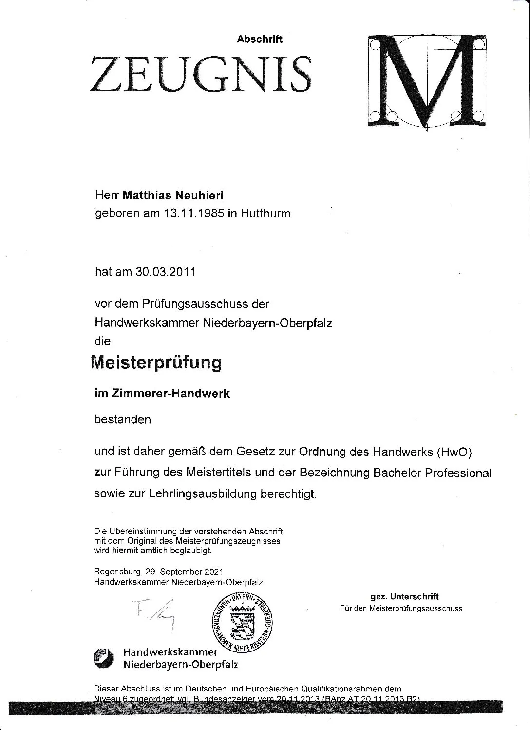 Matthias Neuhierl, langjähriger Mitarbeiter der bisherigen Firma „A. Gibis Holz- u. Dachbau GmbH“, der hier Lehre und Gesellenzeit und dann im Jahre 2011 die Meisterprüfung absolviert hat, berät Sie gerne persönlich und erstellt Ihnen eine attraktive Planung sowie das passende Angebot für Ihr Wunschobjekt.